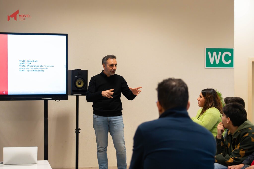 Reforçando o compromisso com o empreendedorismo e inovação, o momento Show & Tell contou com as apresentações da Bijoutsow e Plataforma de Renderização (ambas beneficiários do StartupVoucher e apoiados pela Moveltex) e ainda com a incubada Ambiwood, que partilharam os seus projetos e receberam feedback especializado.